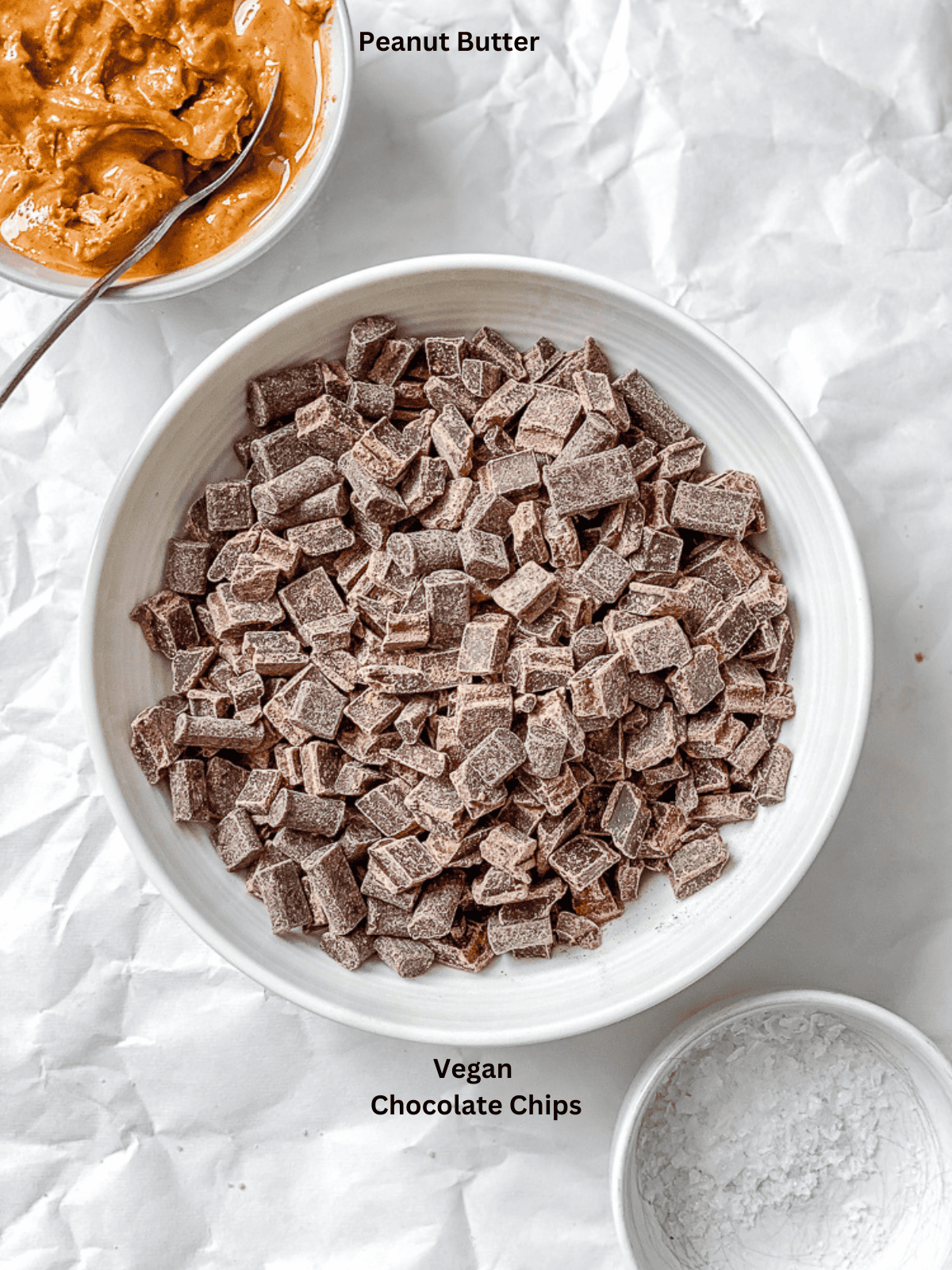 - Breakfast granola cups: Press the peanut butter oatmeal mixture into a regular muffin tin, building it up the sides, so it’s a thin ‘bowl’/cup,’ then add a thin layer of the vegan chocolate to the top. The ‘cup’ could then be filled with your favorite dairy-free yogurt and fruit like blueberries, banana, etc. for more of a complete breakfast. Dip your fingers in water when shaping them if they’re very sticky.