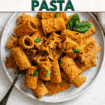 For a soy-free pesto rosso pasta, replace the tofu with cashew cream/other dairy-free cream, dairy-free cream cheese and pasta water OR only the starchy pasta water (which won’t be as creamy).